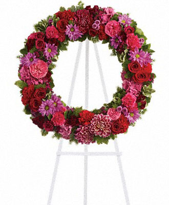 The Infinite Love wreath is a vibrant collection of red and pink flowers, accented by lush greens. It is the perfect choice for a funeral service, allowing you to honor the departed with a noble and heartfelt tribute.