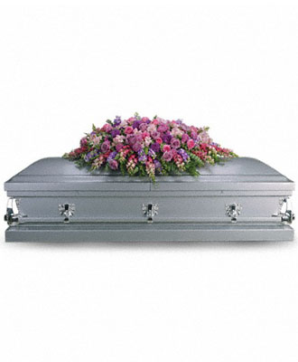This stunning arrangement features delicate touches of lavender amidst the pink roses, snapdragons, chrysanthemums, and alstroemeria. The sight of it warms the hearts of those in attendance, and the radiant beauty covering the casket makes the ceremony even more special. Flowers are an essential part of any funeral, and this casket spray expresses true emotions more deeply than a simple bouquet of roses or any other flowers.
